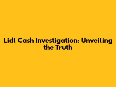 Lidl Cash Investigation: Unveiling The Truth