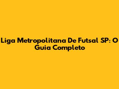 Liga Metropolitana De Futsal SP: O Guia Completo