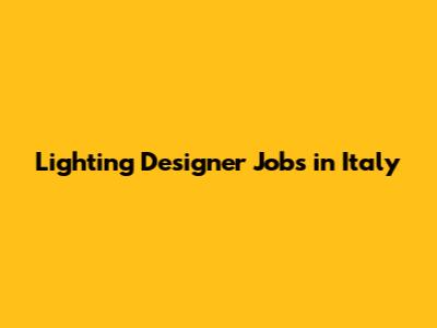 Lighting Designer Jobs: Find Opportunities In Italy