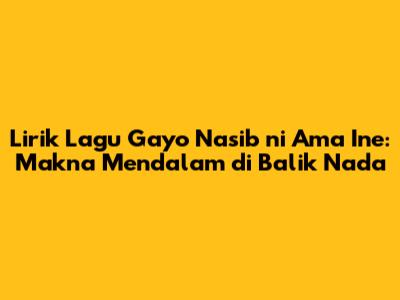 Lirik Lagu Gayo Nasib Ni Ama Ine: Makna Mendalam