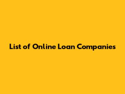 List Of Online Loan Companies
