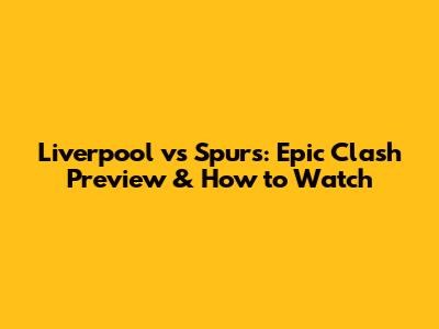 Liverpool Vs Spurs: Epic Clash Preview & How To Watch
