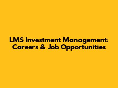 LMS Investment Management: Careers & Job Opportunities