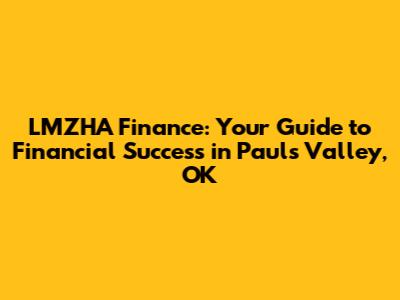 LMZHA Finance: Your Guide To Financial Success In Pauls Valley, OK