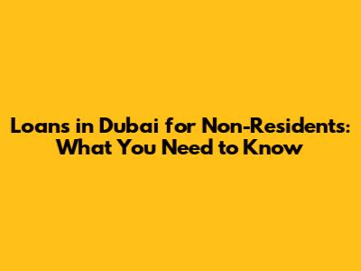 Loans In Dubai For Non-Residents: What You Need To Know