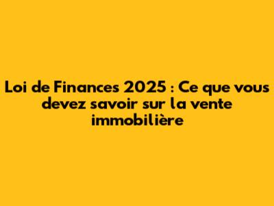Loi De Finances 2025 : Tout Savoir Sur La Vente Immobilière