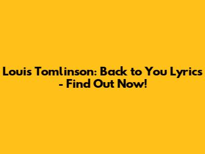 Louis Tomlinson: Back To You Lyrics - Find Out Now!