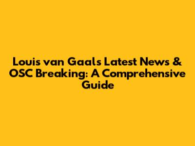 Louis Van Gaal's Latest News & OSC Breaking: A Comprehensive Guide