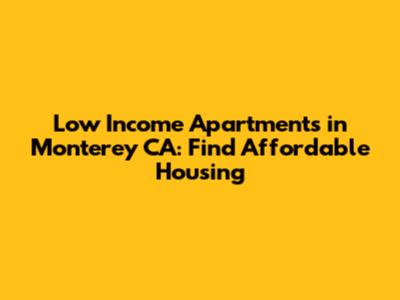 Low Income Apartments In Monterey CA: Find Affordable Housing