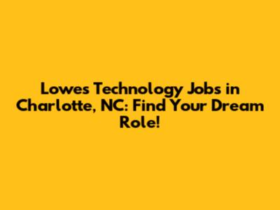 Lowes Tech Jobs In Charlotte, NC: Find Your Dream Role!