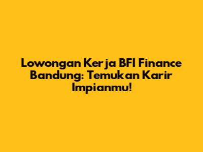 Lowongan Kerja BFI Finance Bandung: Temukan Karir Impianmu!