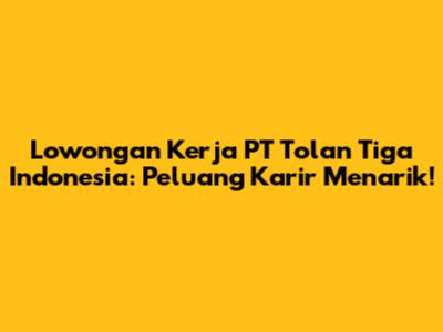 Lowongan Kerja PT Tolan Tiga Indonesia: Peluang Karir Menarik!