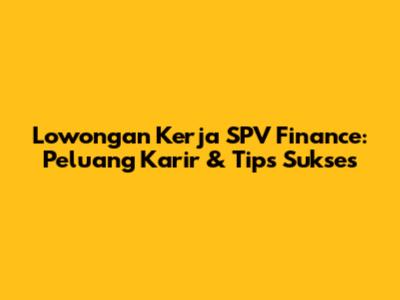 Lowongan Kerja SPV Finance: Peluang Karir & Tips Sukses
