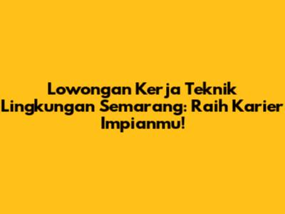 Lowongan Kerja Teknik Lingkungan Semarang: Peluang Karier Terbaik