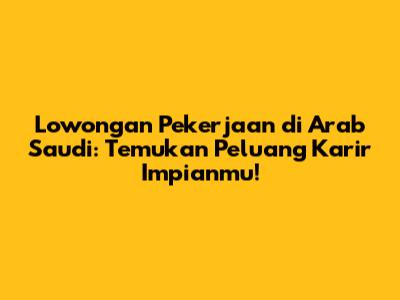 Hai, guys! Kalau kamu lagi cari lowongan pekerjaan di Arab Saudi, atau pengen banget kerja di Arab Saudi buat ngeraih pengalaman internasional, artikel ini pas banget buat kamu! Kita bakal bahas tuntas tentang peluang kerja di Timur Tengah, khususnya di Arab Saudi. Mulai dari jenis pekerjaan yang banyak dicari, tips-tips penting biar lamaranmu dilirik, sampai info gaji dan tunjangan yang bikin semangat kerja. Yuk, simak terus!
