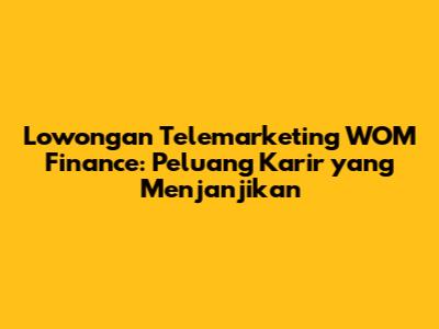Guys, lagi cari kerjaan di bidang telemarketing, khususnya di WOM Finance? Pas banget nih! Artikel ini bakal ngupas tuntas soal lowongan telemarketing di WOM Finance, mulai dari apa aja sih tugasnya, kualifikasinya, sampai gimana cara biar kamu dilirik sama HRD. Siapa tahu, karir impianmu ada di sini!