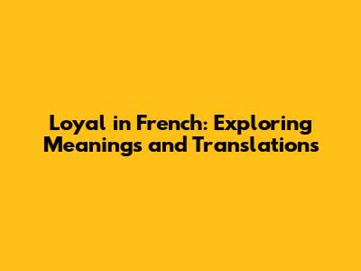 Loyal In French: Exploring Meanings And Translations