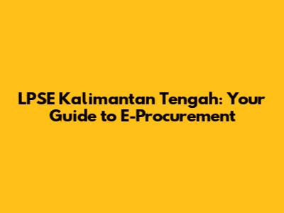 LPSE Kalimantan Tengah: Your Guide To E-Procurement
