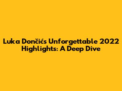Luka Dončić's Unforgettable 2022 Highlights: A Deep Dive