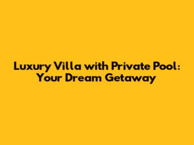 Luxury Villa With Private Pool: Your Dream Getaway