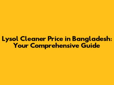 Lysol Cleaner Price In Bangladesh: Your Complete Guide
