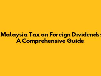 Malaysia Tax On Foreign Dividends: A Comprehensive Guide