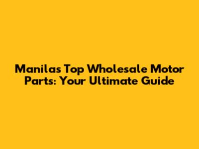 Manila's Top Wholesale Motor Parts: Your Ultimate Guide