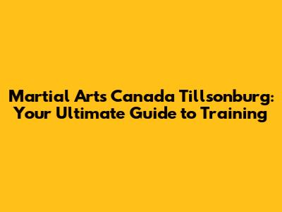 Martial Arts In Tillsonburg, Canada: Your Guide