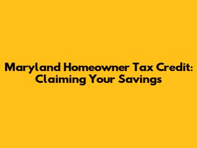 Maryland Homeowner Tax Credit: Claiming Your Savings