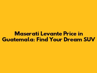 The Maserati Levante is an exceptional SUV that offers a blend of luxury, performance, and Italian flair. While the Maserati Levante price in Guatemala can be a significant investment, with careful research, planning, and negotiation, you can make your dream of owning this incredible vehicle a reality. Remember to factor in all costs, explore your options, and choose a reputable source for your purchase. Happy driving!