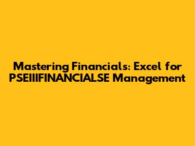 Mastering Financials: Excel For PSEIIIFINANCIALSE Management