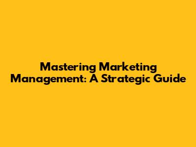 Mastering Marketing Management: A Strategic Guide