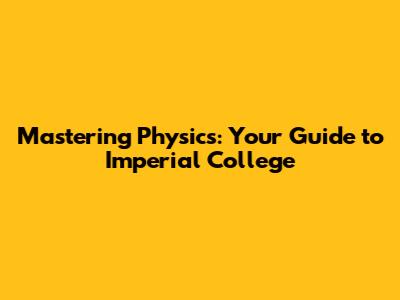 Mastering Physics: Your Guide To Imperial College