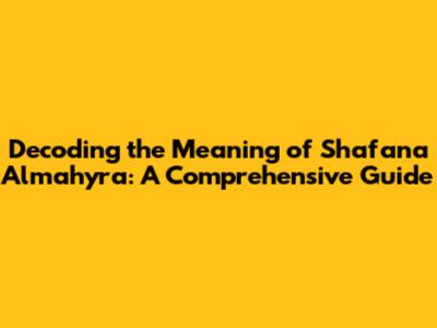 Meaning Of Shafana Almahyra: A Beautiful Name Explained