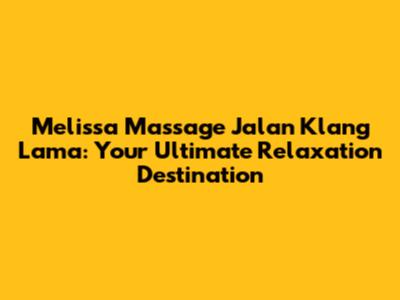 Hey guys! Are you stressed out and in need of some serious chill time? Well, if you're around Jalan Klang Lama, you're in luck! There's a spot that's all about helping you unwind and rejuvenate: Melissa Massage. I'm gonna give you the lowdown on why this place is worth checking out, what you can expect, and why it might just become your new go-to for some much-needed pampering. Seriously, this place is the real deal.