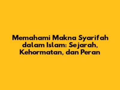 Hai, teman-teman! Pernahkah kalian mendengar istilah "Syarifah" dalam Islam? Mungkin kalian sering menemukannya dalam silsilah keluarga atau bahkan di nama teman. Nah, kali ini kita akan membahas tuntas tentang apa sebenarnya arti Syarifah itu, sejarahnya, bagaimana ia dihormati, dan peran pentingnya dalam masyarakat Muslim. Jadi, mari kita mulai petualangan seru ini untuk memahami lebih dalam tentang sosok yang mulia ini!