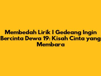 Guys, mari kita selami lebih dalam salah satu lagu paling ikonik dari Dewa 19, yaitu "I Gedeang Ingin Bercinta". Lagu ini, yang sarat akan emosi dan kekuatan lirik, telah berhasil menyentuh hati jutaan pendengar di seluruh Indonesia. Dalam artikel ini, kita akan membahas secara detail makna di balik liriknya, interpretasi yang beragam, serta bagaimana lagu ini dapat terus relevan hingga saat ini. Siap-siap untuk merasakan kembali gejolak cinta dan kerinduan yang dihadirkan oleh Dewa 19!