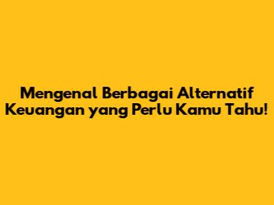 Mengenal Berbagai Alternatif Keuangan Yang Perlu Kamu Tahu!