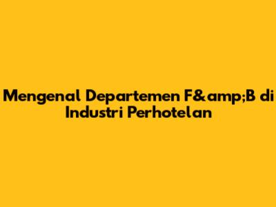 Mengenal Departemen F&B Di Industri Perhotelan