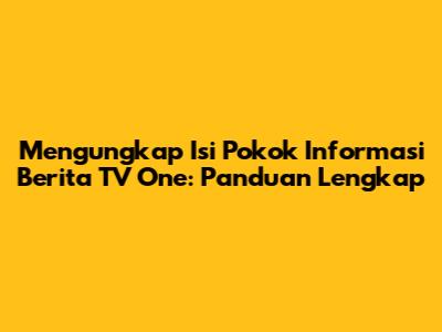 TV One, sebagai salah satu stasiun televisi berita terkemuka di Indonesia, selalu menyajikan beragam informasi yang relevan dan aktual. Guys, kali ini kita akan membahas tuntas tentang isi pokok informasi berita TV One. Kita akan bedah mulai dari jenis berita yang disajikan, bagaimana mereka menyusun beritanya, hingga bagaimana kita bisa memanfaatkan informasi tersebut untuk kepentingan kita sehari-hari. Jadi, siap-siap ya, karena kita akan menyelami dunia jurnalistik TV One yang seru!