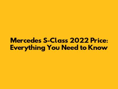Mercedes S-Class 2022 Price: Everything You Need To Know