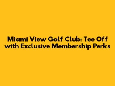 Miami View Golf Club: Tee Off With Exclusive Membership Perks
