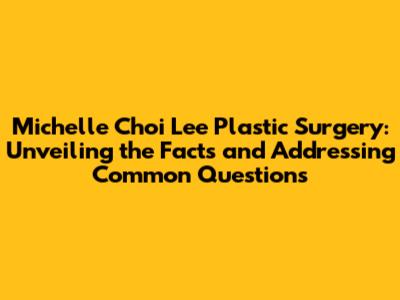 Hey everyone! Today, we're diving into a topic that sparks a lot of curiosity and discussion: Michelle Choi Lee and the speculation surrounding plastic surgery. It's a subject that's been buzzing around the internet, with fans and followers alike wondering about potential enhancements. We're going to break down everything we know, address some common questions, and explore the realities of cosmetic procedures in the public eye. So, grab a seat, and let's get started!