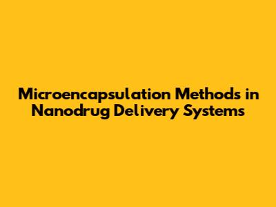 Microencapsulation Methods In Nanodrug Delivery Systems