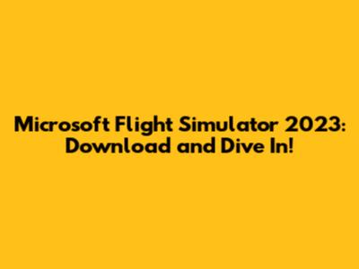 Microsoft Flight Simulator 2023: Download And Dive In!