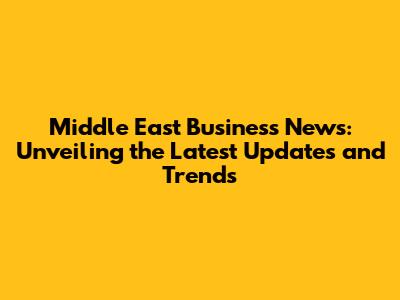 Middle East Business News: Latest Updates And Trends