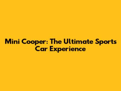 Mini Cooper: The Ultimate Sports Car Experience