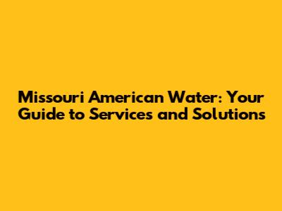 Missouri American Water: Your Guide To Services And Solutions