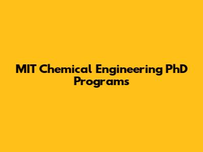 MIT Chemical Engineering PhD Programs