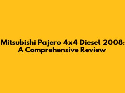 Mitsubishi Pajero 4x4 Diesel 2008: A Comprehensive Review